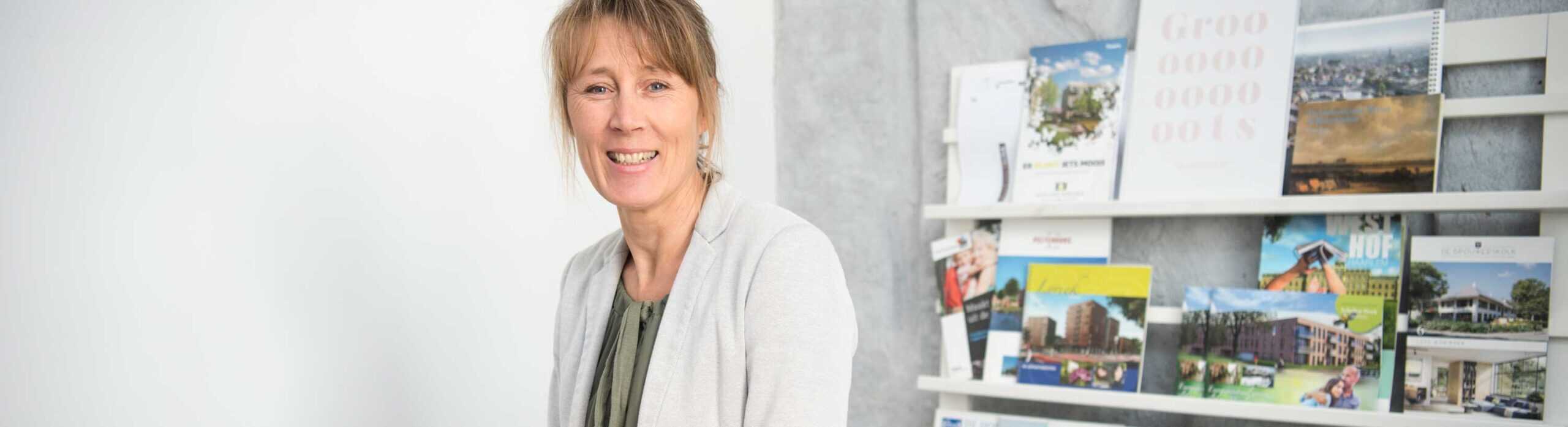 “Ik help mensen een nog niet gebouwde woning voor zich te zíen. Dat lukt met de juiste uitleg en aandacht, dan krijgt het vorm en gaat het leven”, lacht Wendela. Zij kan het weten. Wendela werkt al meer dan twintig jaar als nieuwbouwmakelaar: “Ik vind het leuk dat je een wijk ziet ontstaan en dat je mensen kunt begeleiden in een proces dat zo anders is en anders voelt dan het kopen van een bestaande woning.”